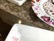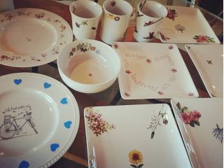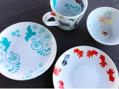 白磁器の食器に特殊な転写シールを貼って、オリジナルの食器を作るポーセリンアート。
