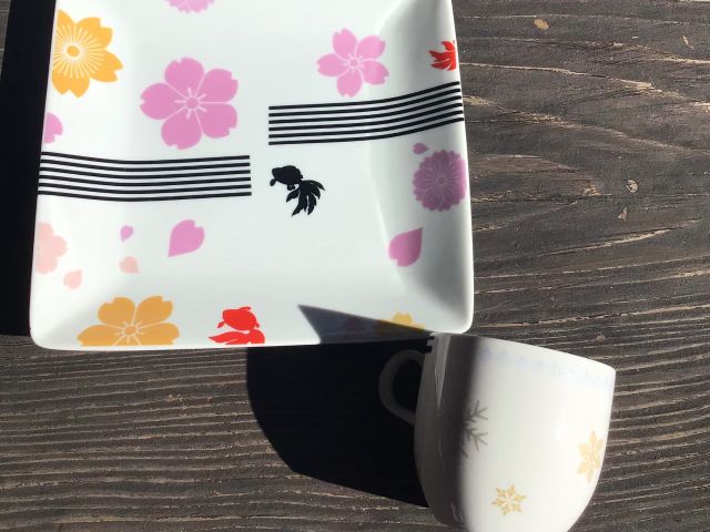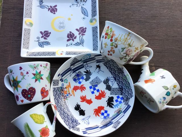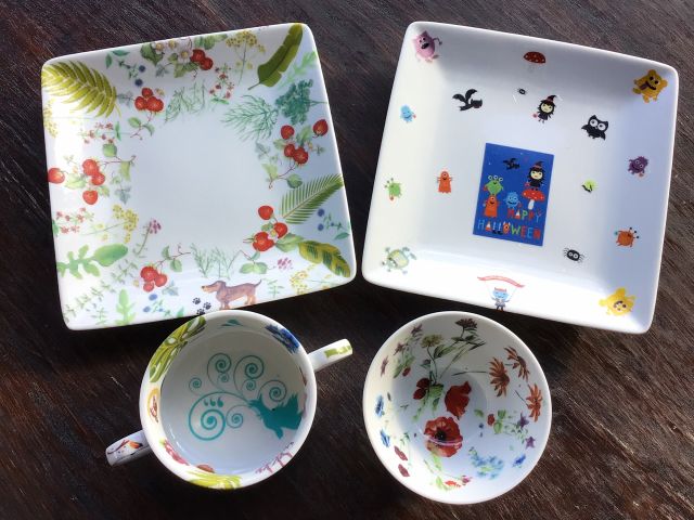 白磁器の食器に特殊な転写シールを貼って、オリジナルの食器を作るポーセリンアート。