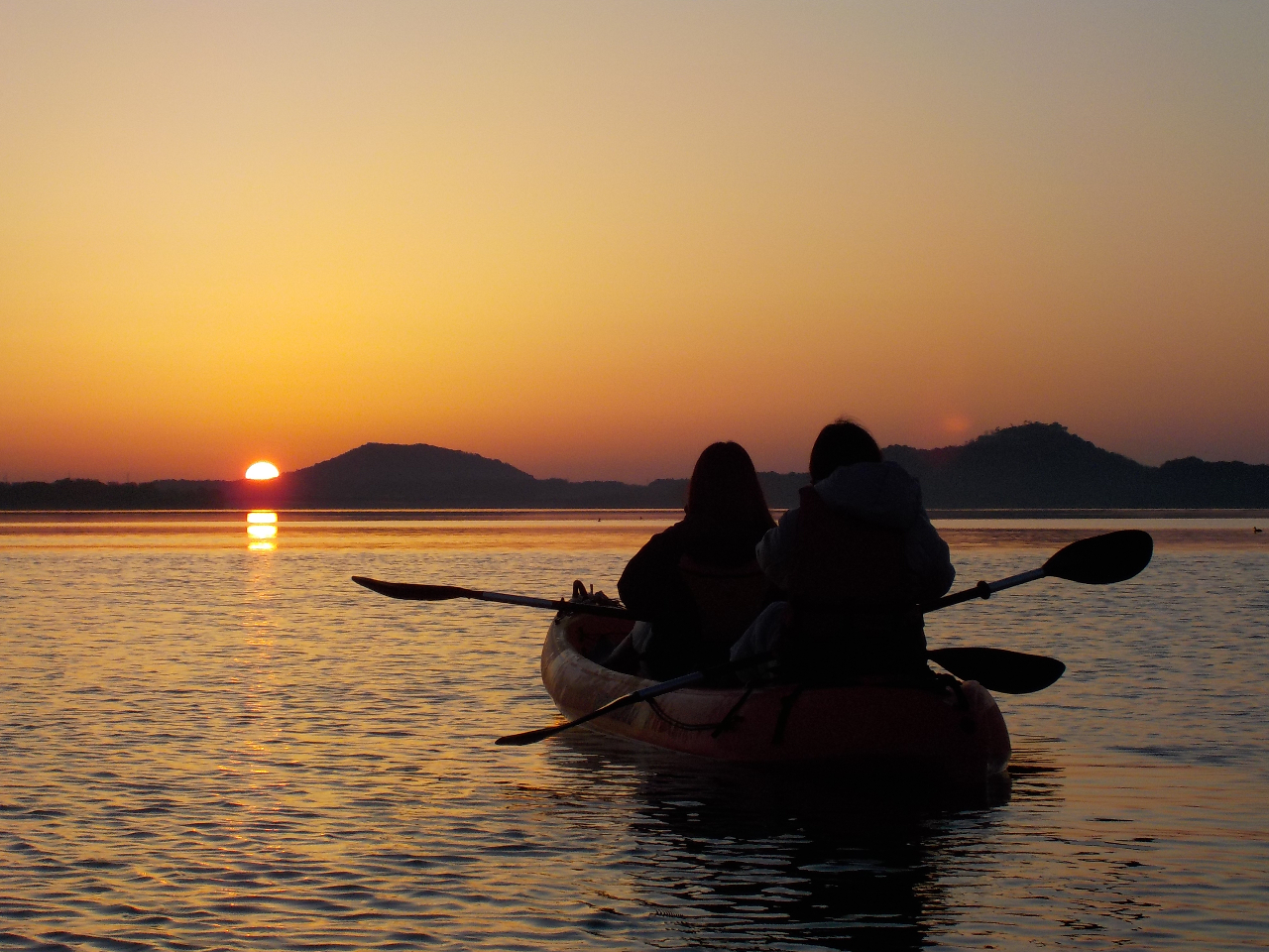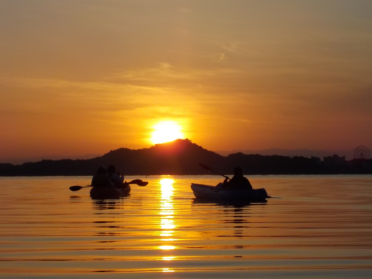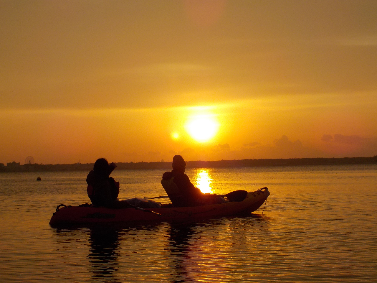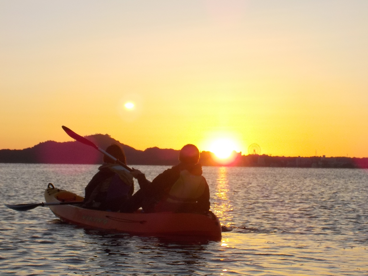 カヤックの上から朝日を眺めます。
