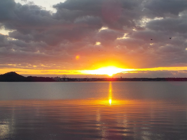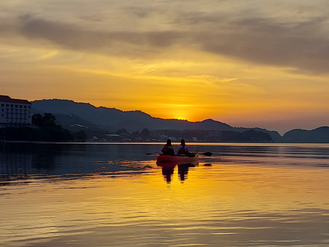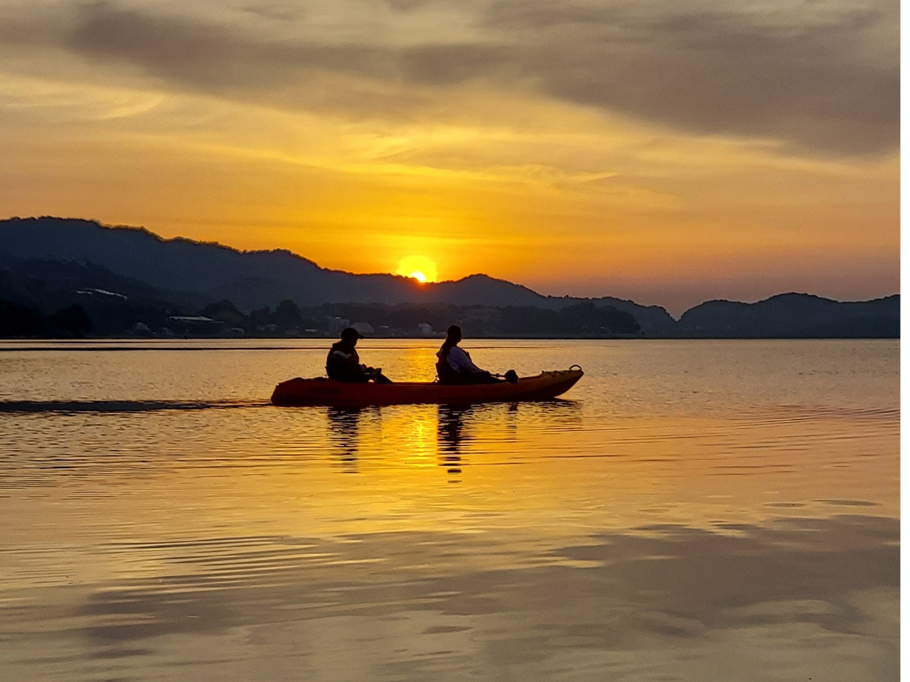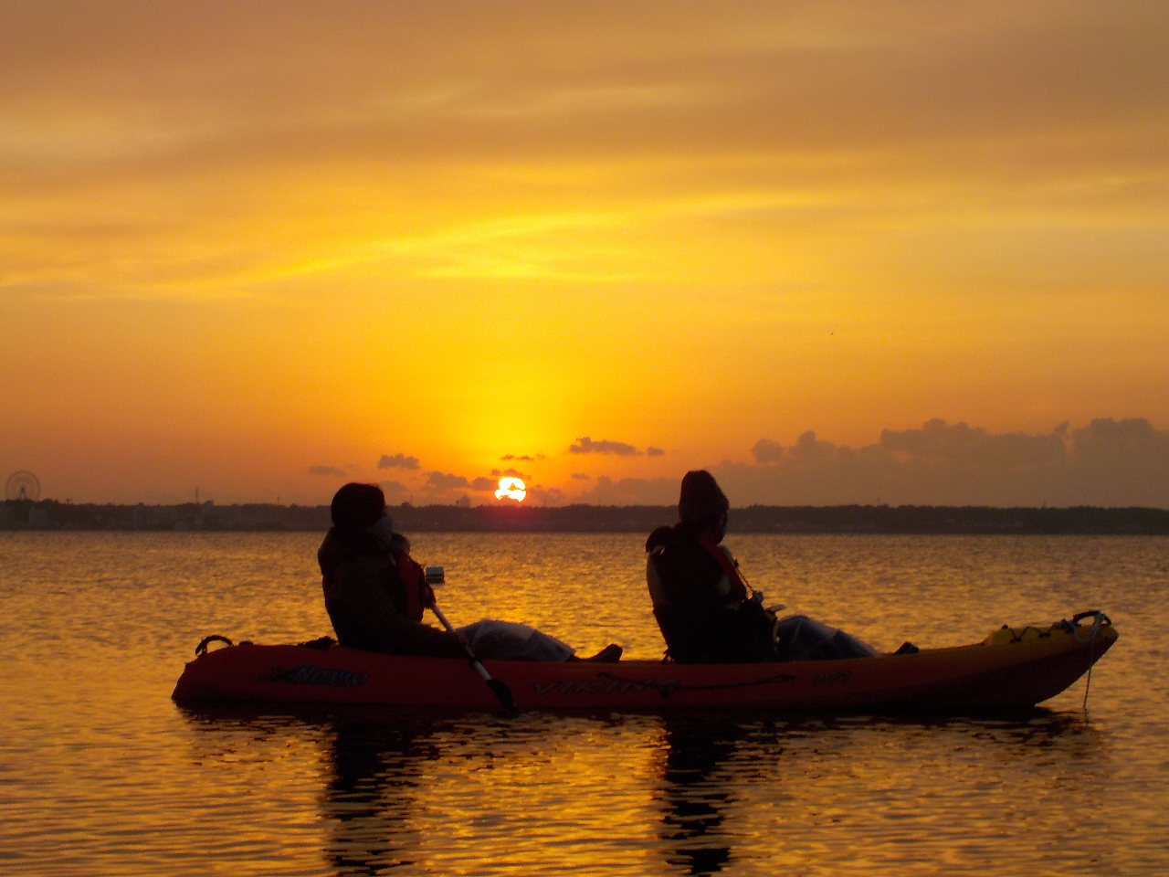 カヤックの上から朝日を眺めます。