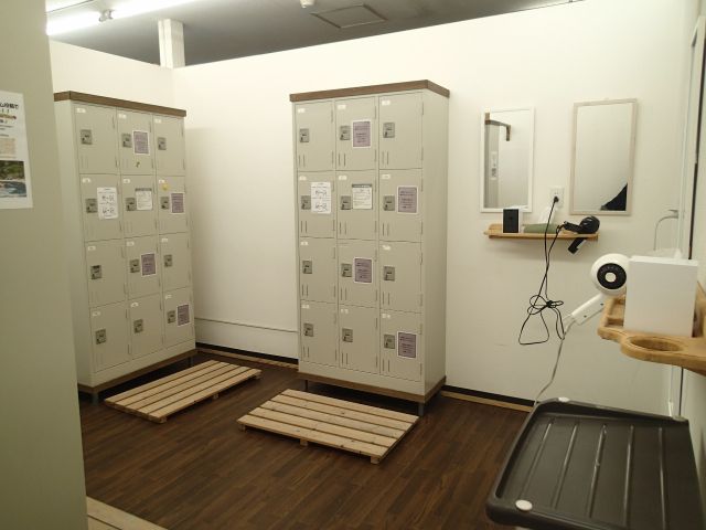 A 広々としたベースはシャワー、室内更衣室を完備し、レンタルのウェット