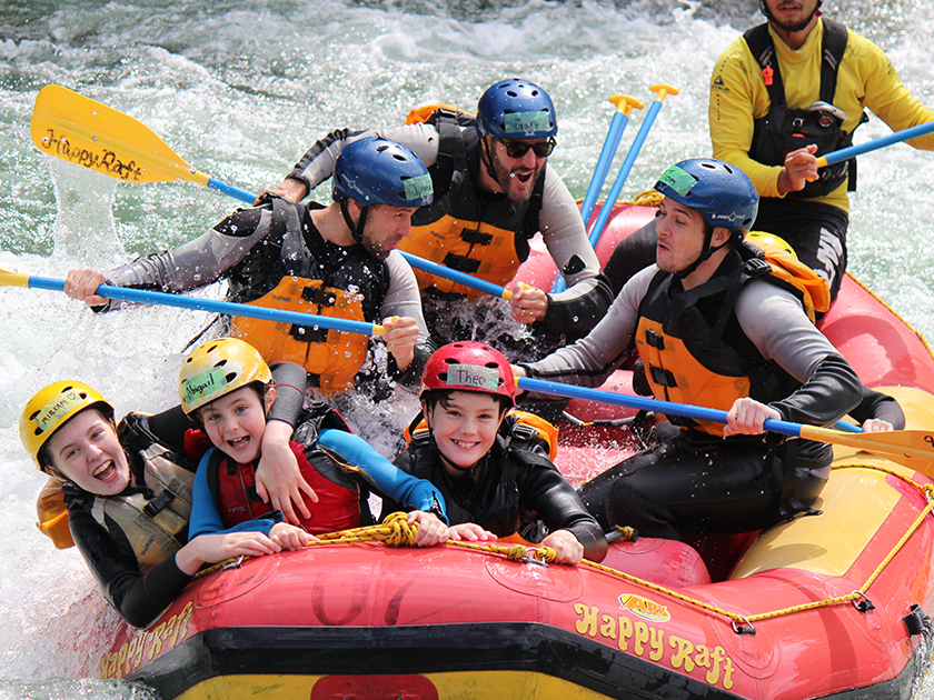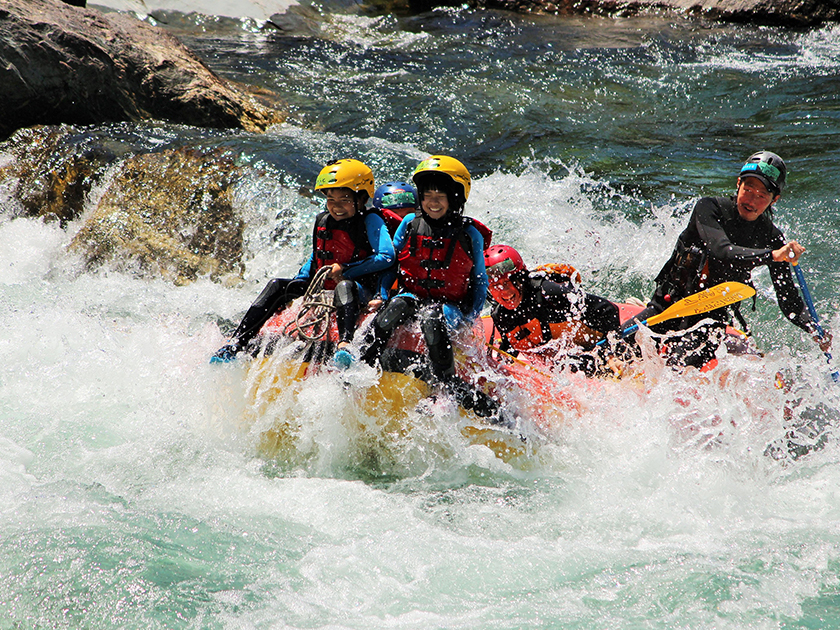 小学生がいるご家族みんなで大歩危ショートツアーと同じコースで行う本格的なラフティングツアーが体験できるのは、ハッピーラフトならでは!激流に挑もう!