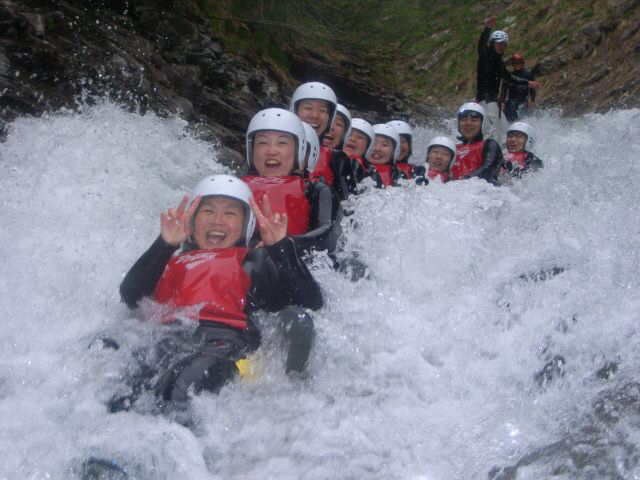 ワイワイ遊んで、もりもり食べてください☆沢下り(キャニオニング)