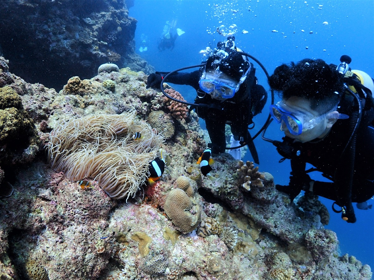 1ダイブ目は、ゆっくりお魚たちと触れ合いながら、水中の景色を眺めてダイビングに慣れて頂きます☆