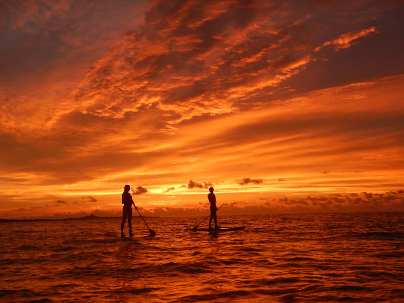 【美ら海水族館・今帰仁村周辺】1日1組限定!忘れられない感動を。光り輝くサンセットSUPクルージング・写真サービス