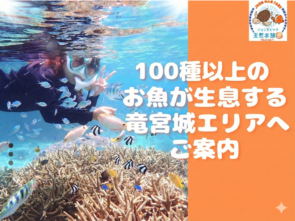 【沖縄 那覇から約30分】海のテーマパーク・天然水族感でウミガメ&100種以上の生物ガイド自然体験シュノーケリング|送迎可|初心者大歓迎|当日予約OKのプラン詳細