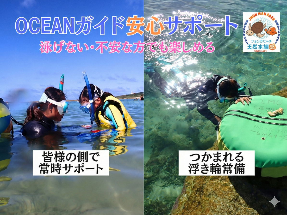 【沖縄 那覇から約30分】海のテーマパーク・天然水族感でウミガメ&100種以上の生物ガイド自然体験シュノーケリング|送迎可|初心者大歓迎|当日予約OK