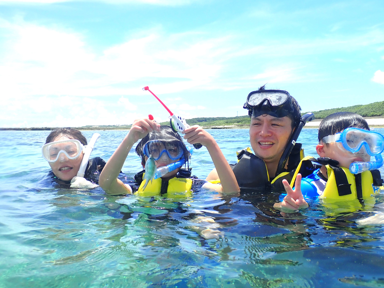 《那覇から約30分♪》1組貸切プライベートツアー・勝者は誰だ!何匹釣れるか競争しよう♪【海の中を見ながら釣れるフィッシングシュノーケル】★8〜65歳★送迎無料★