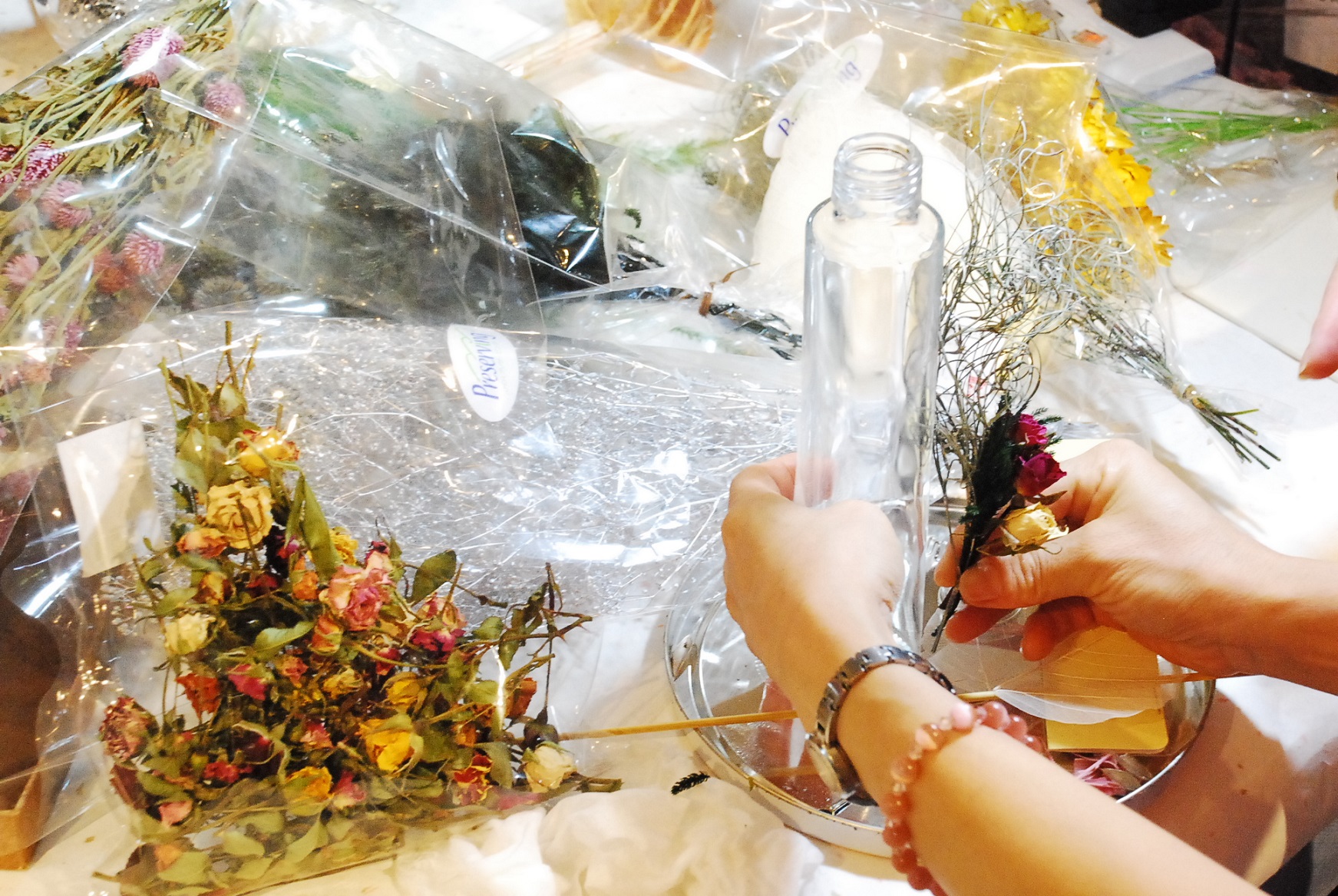 人気のハーバリウム体験レッスン ボールペンもできます 女性はもちろんカップルにも人気です