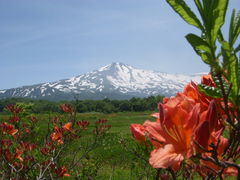 レンゲツツジと雪のかぶった鳥海山のコラボが見たくて毎年来ています。