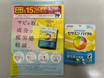配布いたしますのはサントリー様のサプリメント商品『セサミンバイタル』です。