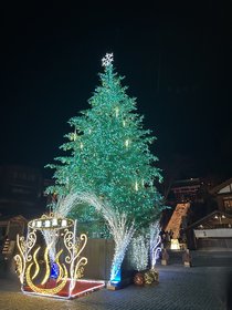 約13メートルのツリーに3万個もの電飾が湯畑の夜を彩ります