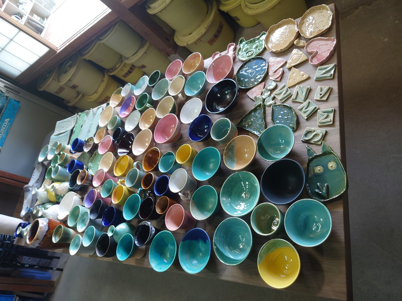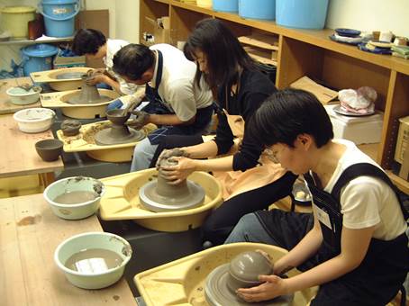 ろくろが4台、手びねり用のテーブルが2台(8人掛け)を御用意しています。