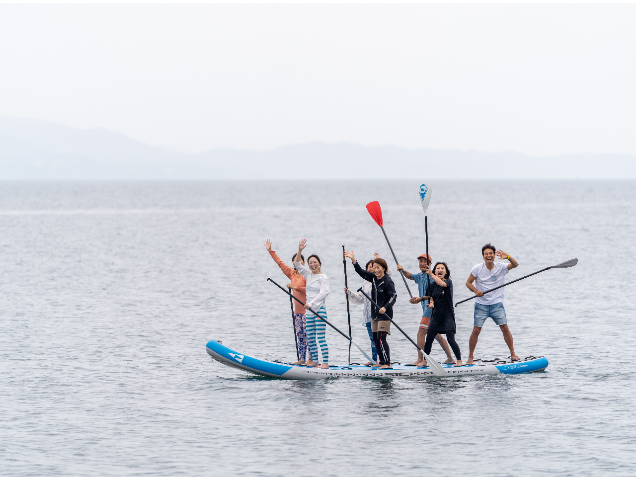 最大10人乗りの巨大なボードを1グループ貸切でご利用いただけます。