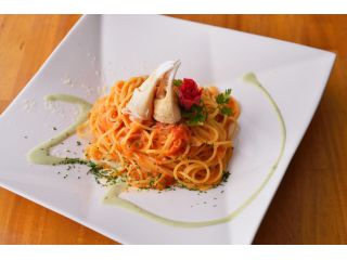 ☆メニューはズワイ蟹とトマトのパスタ、ドリンク、日替わりデザート付