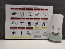 さて、当ホテルでは、アメニティ、歯ブラシ・シェーバー・櫛等、お部屋にはご用意がございません。1Fエレベーター前にアメニティーバーがございますので、必要な分をお取り頂いて下さいませにゃ!