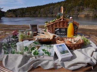Hoko.Glampingエリア内「(湖畔ウッドデッキ」にて今話題のおしゃれなピクニックが手ぶらでお楽しみいただける、「ランチボックス」「ウッドデッキ」「装飾グッズ」がセットになったプランです♪