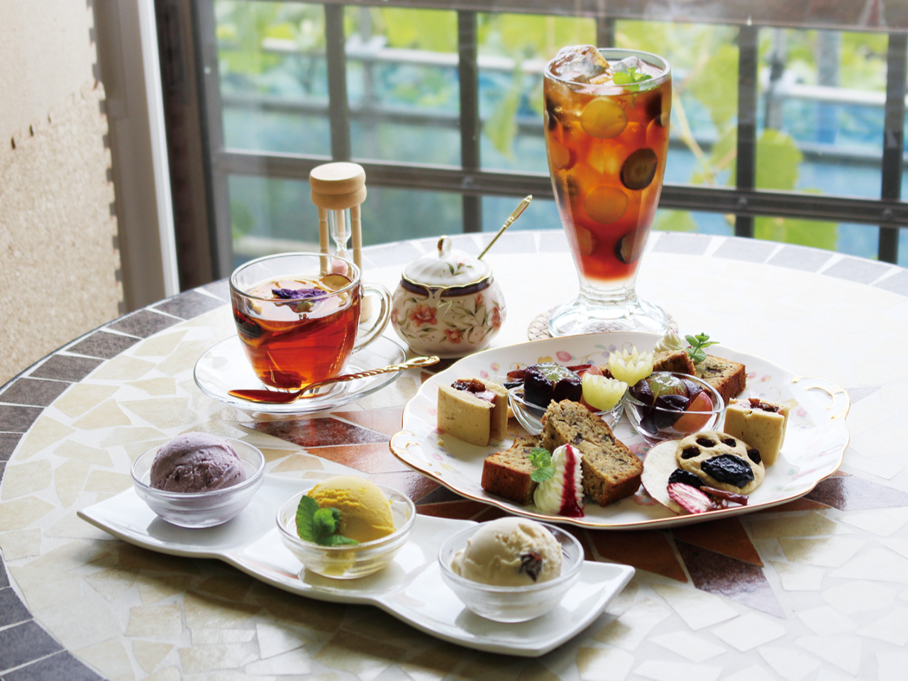 • ティーコーディネーターの店長が淹れるフルーツに合う紅茶に贅沢にぶどうを浮かべたここだけの特別なアイスティーを始め、季節の果物のフルーツティーも味わえます!