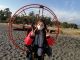 モーター付きパラグライダーなので、山に登らなくても安全な砂浜からふんわり飛び立ちます
