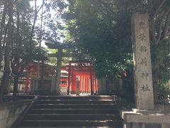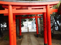 金王八幡宮参拝の帰りに立ち寄りました。道路を挟んで隣にあります。鮮やかな朱色の鳥居が並んでいて、ちょうど夕日もあたり、とても綺麗でした。小さな神社でしたが、落ち着いた神社でした。私は京都の伏見稲荷をふと思い浮かべてしまいました。規模は全然違いますが、でも都会の真ん中で こんな素敵な神社に出会えて嬉しかったです。