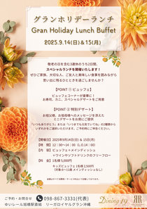 9/14(日)&15(月) グラン ホリデーランチ開催!