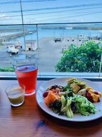 西の浜の風景とともに、旬の魚介&島野菜を使ったヘルシーメニューを数多く取り扱ってます。