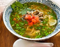 特に人気の「Asian宮古そば」は、宮古そばにパクチーやトマト、