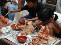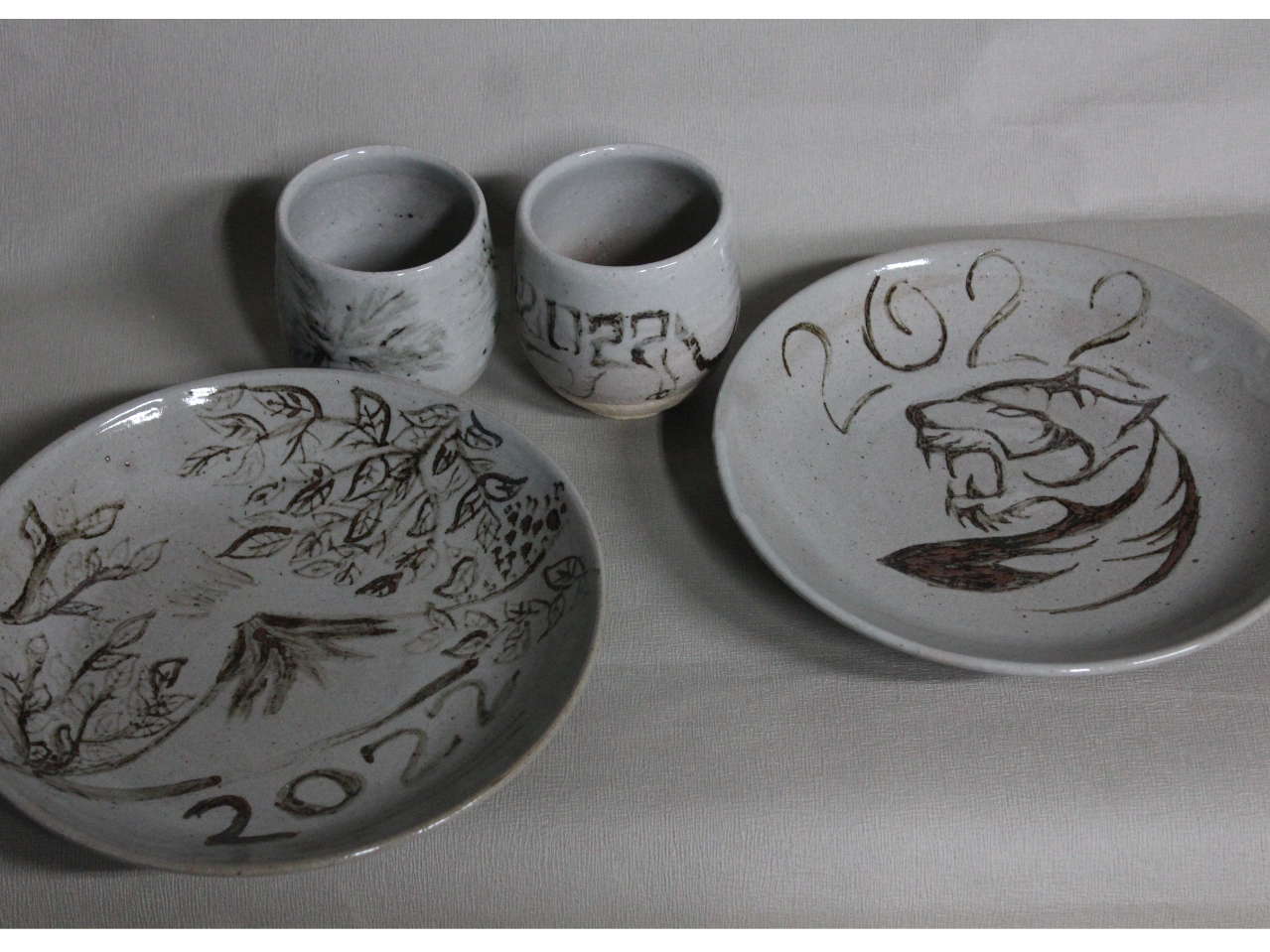 素焼きした湯呑やお皿に自由に絵やメッセージを描いてください。