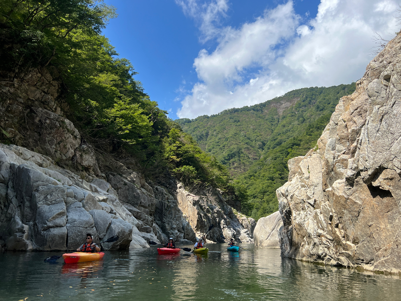 2025年は月曜〜金曜をベースに開催いたします。土日に赤芝峡カヌーツアーをご希望の場合は、お問い合わせください。 土日は主に白川湖と三淵渓谷でのカヌーツアーを開催中です。
