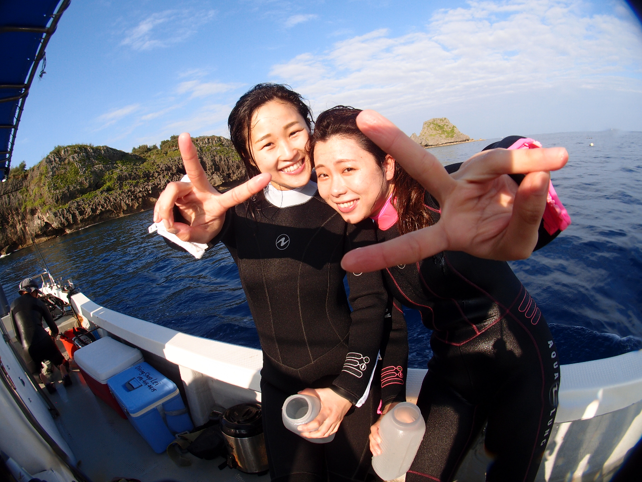 ボートの上で器材を装着して、そのままスルッと海へ。エントリーもエグジットもとっても楽なんです。