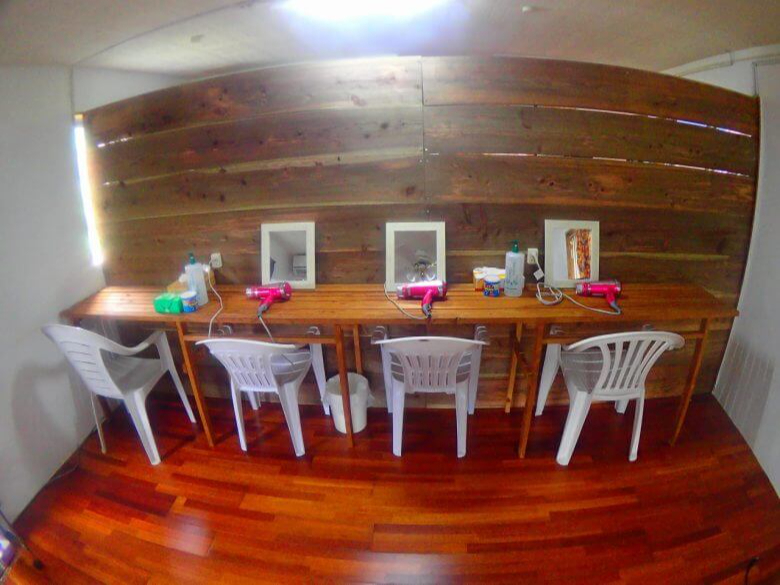 無料設備のパウダールームです。海遊びの後もホテルに戻らずしっかり準備ができます。駐車場、温水シャワー、更衣室など無料です。