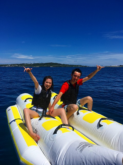 マリンスポーツ大定番のバナナボート・芸人さん御用達、爆笑悲鳴必須のロッキンマーブル・xoエクストリームの当店オススメチューブ3種目が手頃に楽しめる!