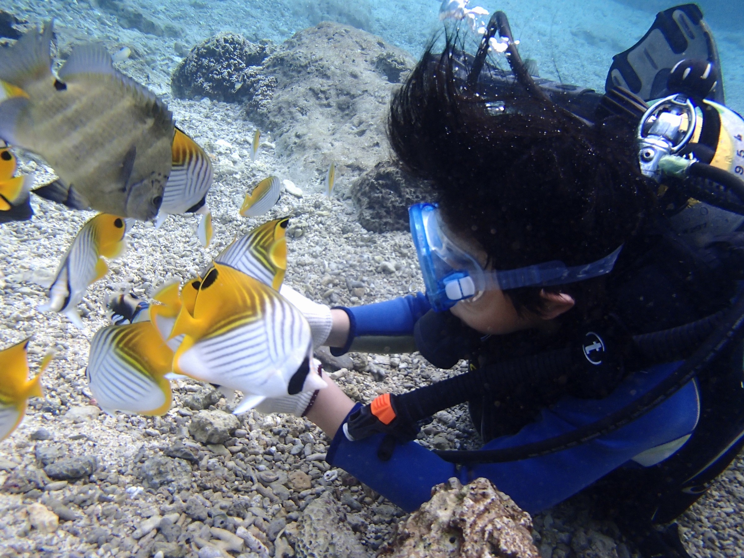 初めてでも、大丈夫!☆餌付け用エサ☆水中カメラレンタル☆ウェットスーツや器材☆全て無料♪