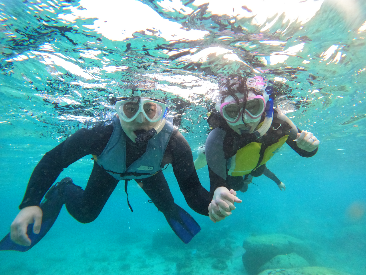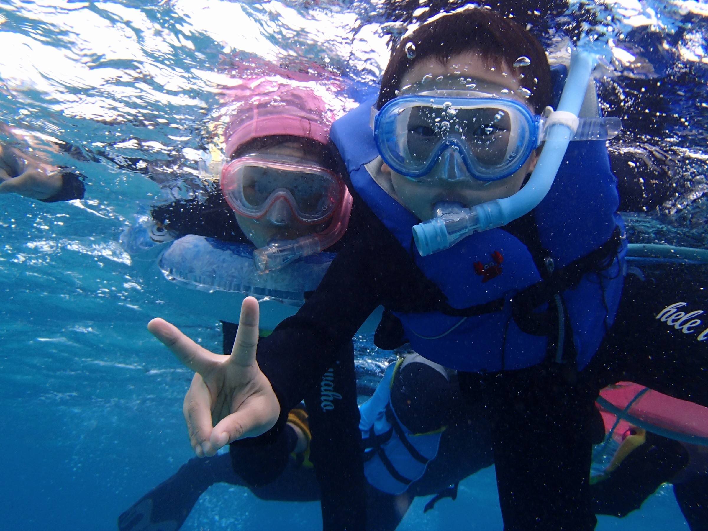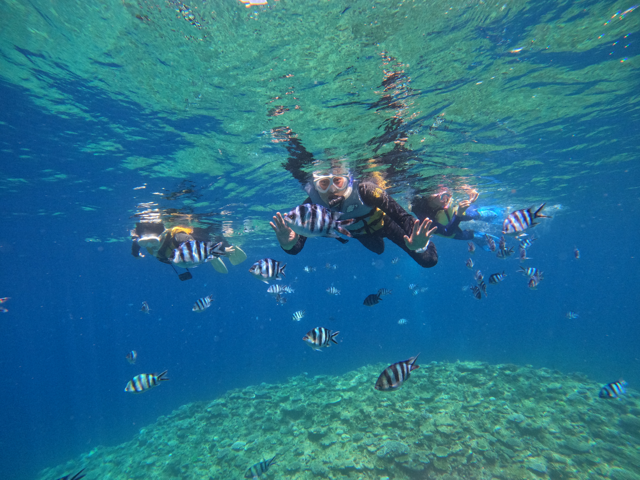仲間と一緒に青の世界へ〜♪シュノーケリング・ボートシュノーケル