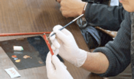 肌に漆が付くとかぶれる恐れがあります。(肌に漆がつかない様こちらでゴム手袋を用意いたします)