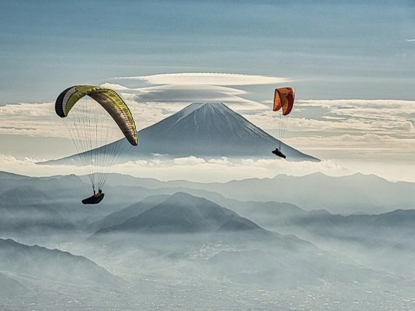 富士山を見ながらパラグライダーを楽しみ♪