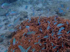 これまでボートシュノーケルでケラマブルーを2度楽しんだ経験がありましが、大度海岸でのシュノーケルではウミガメに二匹出会えたうえ、サンゴや熱帯魚が近くとても楽しめました。