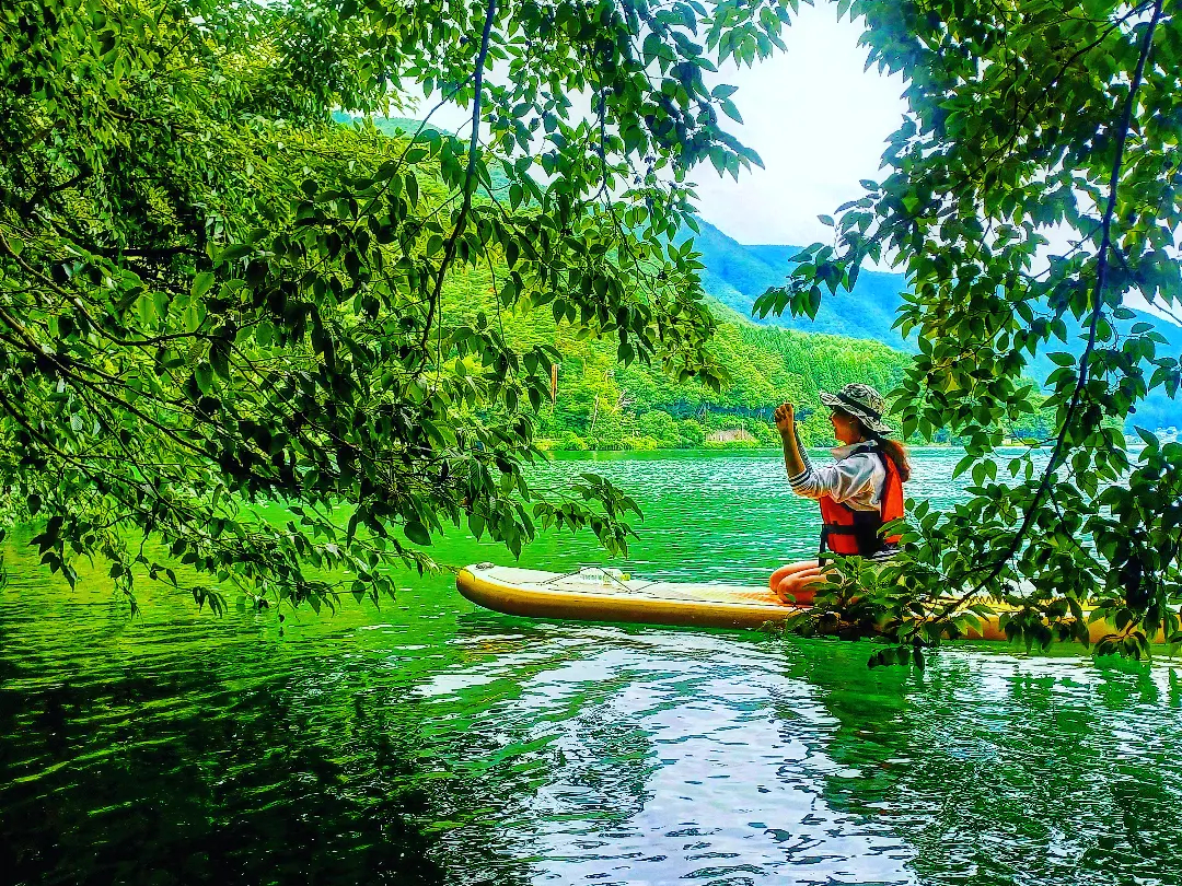 【長野・森の湖SUP】初心者レッスンつき♪サップレンタル|カップル・女性・グループにもおすすめ!木崎湖