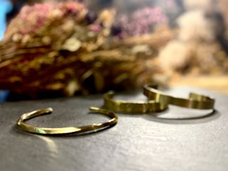 真鍮素材の金属板を加工して、本格的なバングル(ブレスレット)をお作りいただく体験です。