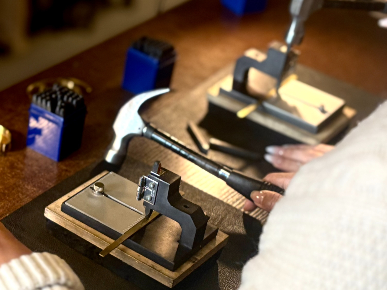 イニシャルや日付などの刻印、槌目の加工など、オリジナリティあふれるシルバーリングを自分自身の手で一から制作できます。シルバーアクセサリー作り