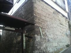 著名な金田一父子が昔に住んでいた場所とのことで、木片が混じった古くて白い石垣が建っています。