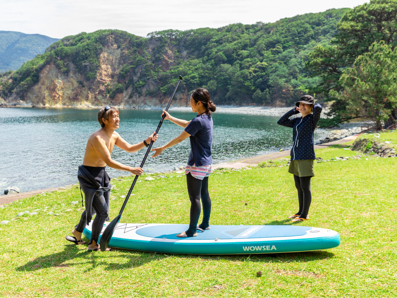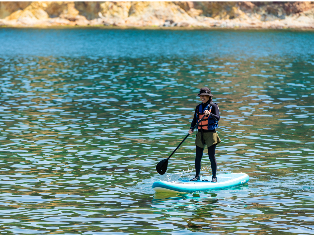 西伊豆・黄金崎公園でSUPを体験できる、約2時間半のプランです。