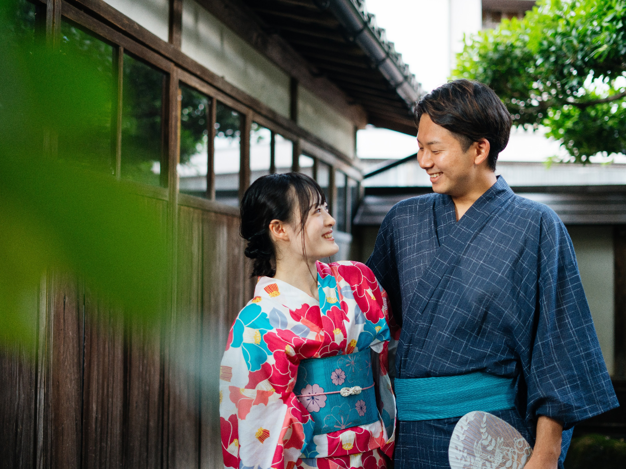 男性のお着物もご用意しておりますので、カップルで楽しめます。