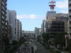 平塚八幡宮前の歩道橋からJR平塚駅をみる