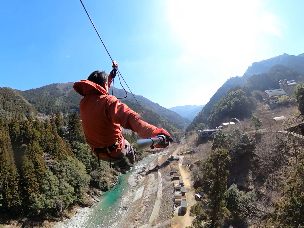 祖谷渓を越える大迫力のキャニオンジップスライド!!木のトンネルを抜ければ美しいエメラルドグリーンの川の上空をひとっ飛び♪