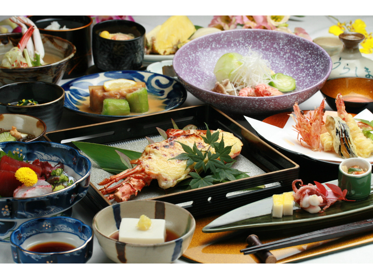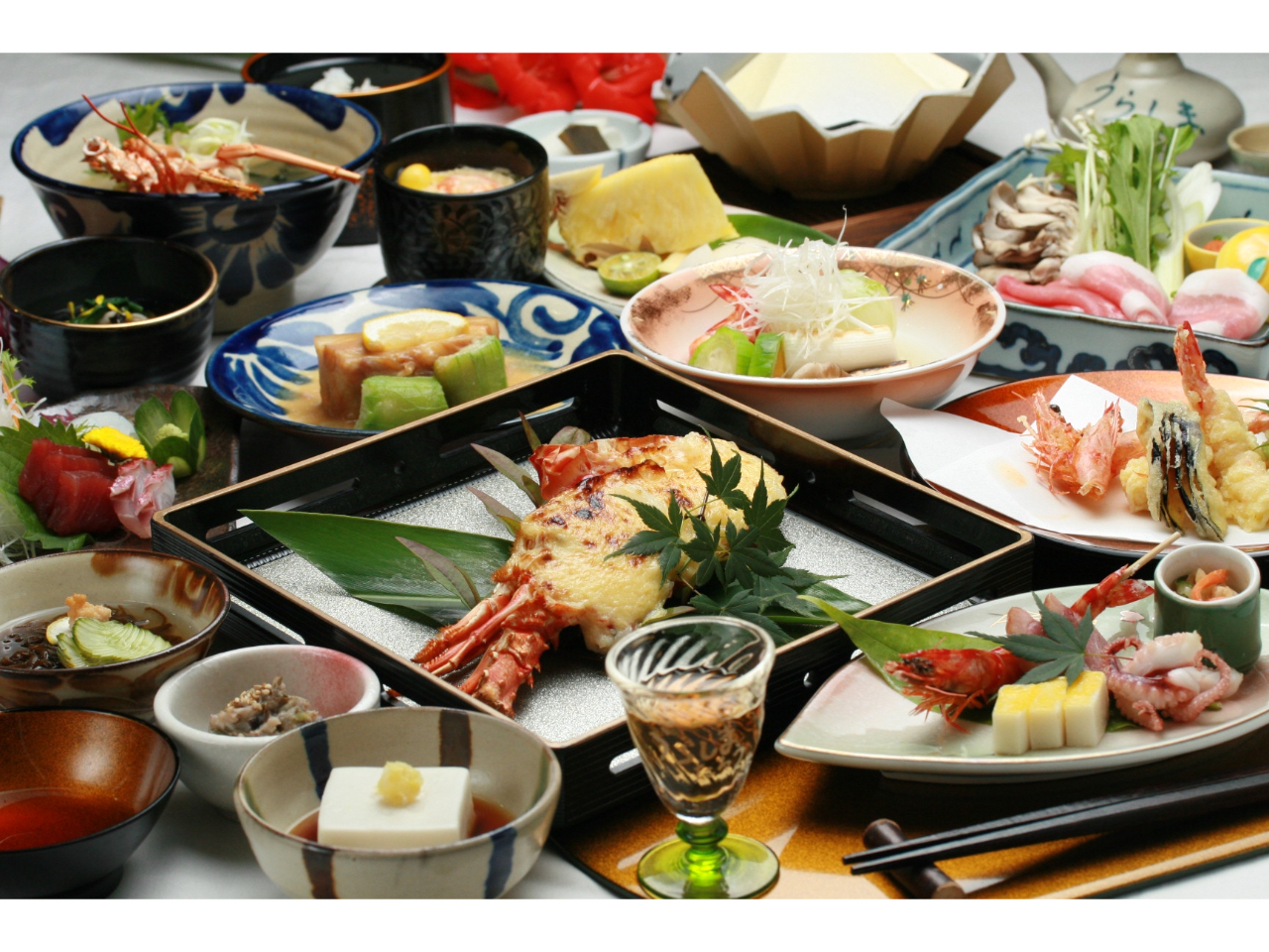お料理は、食前酒〜お刺身〜天ぷら〜イセエビ焼物〜イセエビ汁〜沖縄料理まで充実の計16品をご用意!メニューはもちろん、琉球舞踊も楽しめる宴会にピッタリの内容です!