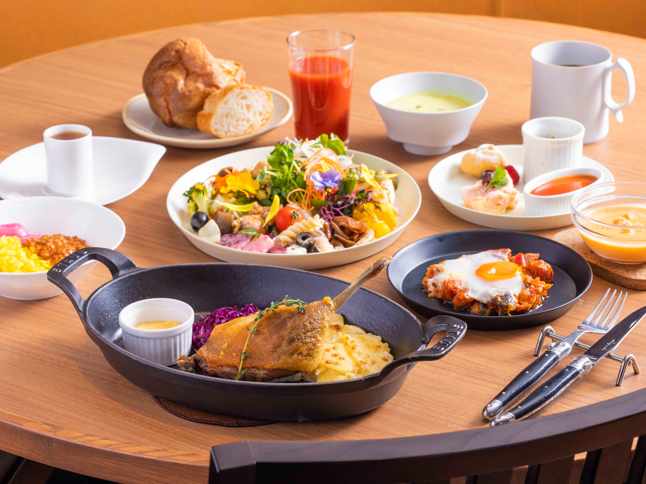 「ブラスリー ミリー ラ・フォーレ」がお届けするセレブレーションランチブッフェ。三浦佐島漁港から仕入れた魚のブイヤベースや、国産牛と三浦産の野菜を使用した岩塩炙り焼きなど、目にも美しい料理の数々が揃う