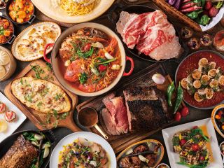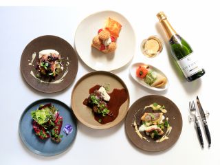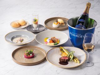 「ブラスリー ミリー ラ・フォーレ」がお届けするセレブレーションランチブッフェ。三浦佐島漁港から仕入れた魚のブイヤベースや、国産牛と三浦産の野菜を使用した岩塩炙り焼きなど、目にも美しい料理の数々が揃う