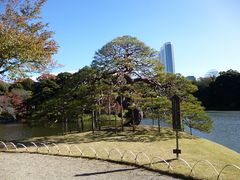 紅葉を楽しみに小石川後楽園を訪ねました。大泉水といわれる大きな池のほとりに、素晴らしい枝ぶりの松がありました。紅葉の本当にきれいでしたが、職人さんの技術の素晴らしさを感じられる、この松の姿も大変印象に残りました。
