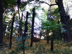【小石川後楽園〜木曽山】シュロの木が多く、別名『シュロ山』とも言うそうです。
